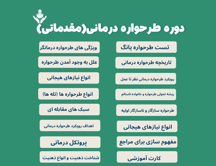 - هدف دوره: طرحواره درمانی برای چه مشکلاتی مناسب هست؟ مراجعی که به اختلالات شدید شخصیتی مثل اختلال شخصیت مرزی،و خودشیفته دچار هست مراجعی که شکایتش مشکلات ارتباطیش هست مراجعی که درگیر الگوهای فکری شناختی و رفتاری ناکارآمد هستن و در زندگیشون مکرر دارن با پیامدهای این الگوهای ارتباطی و شناختی و هیجانی رو به رو میشن برای آشنایی و آگاهی بیشتر با طرحواره ها و رویکرد طرحواره درمانی میتونید در کارگاه طرحواره درمانی من ثبت نام کنید